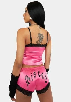 cuz Mondays suck. This pajama set includes a cami top that has a stretchy feel, a contrast colored trim, a cropped fit, a printed graphic of a sleepy Garfield drinking coffee with the words “I Hate Mondays” on the front, matching briefs with a Garfield logo patch on the front, and a no Mondays symbol on the back.