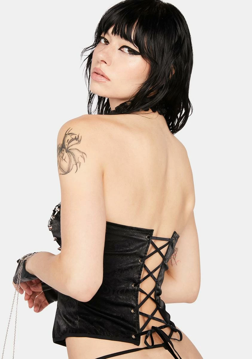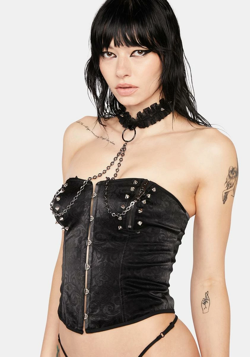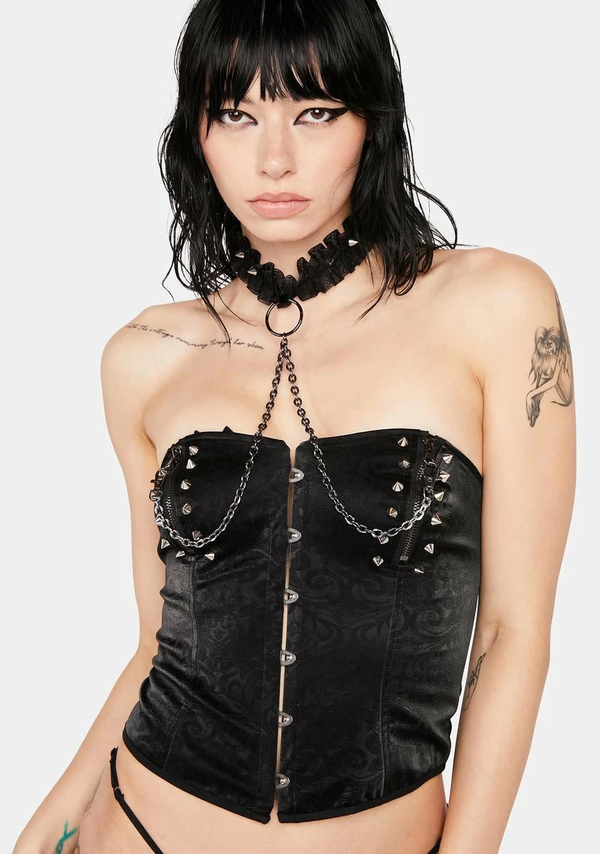 Eva Lady Studded Corset With Attached Chain Choker & G-String Set