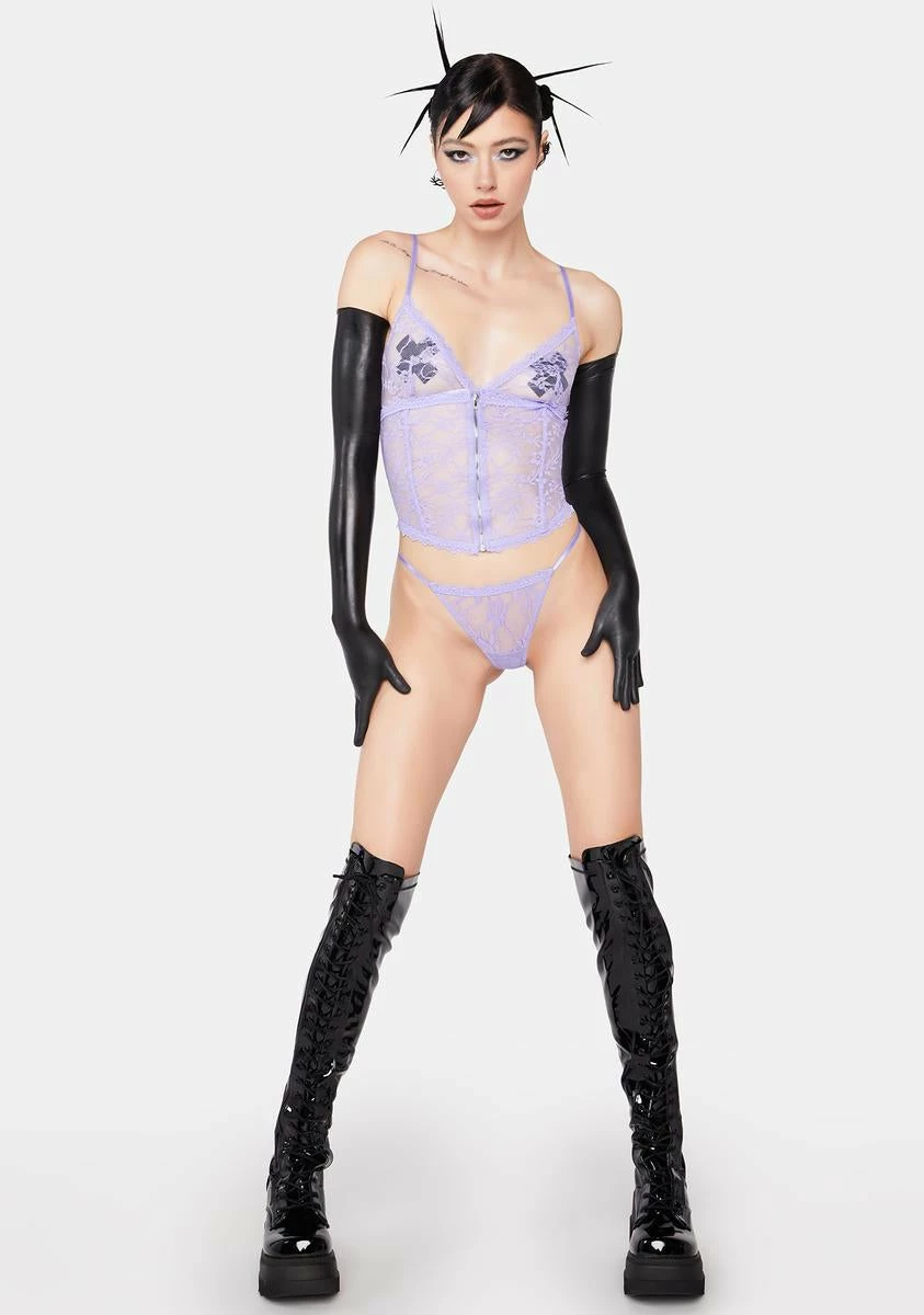 cuz it’s gonna be one memorable night. Make them melt with this lingerie set that includes a sheer floral lace cami corset top that has adjustable shoulder straps, a lace trim, a v-neckline, a front zipper closure, and a matching panty thong.