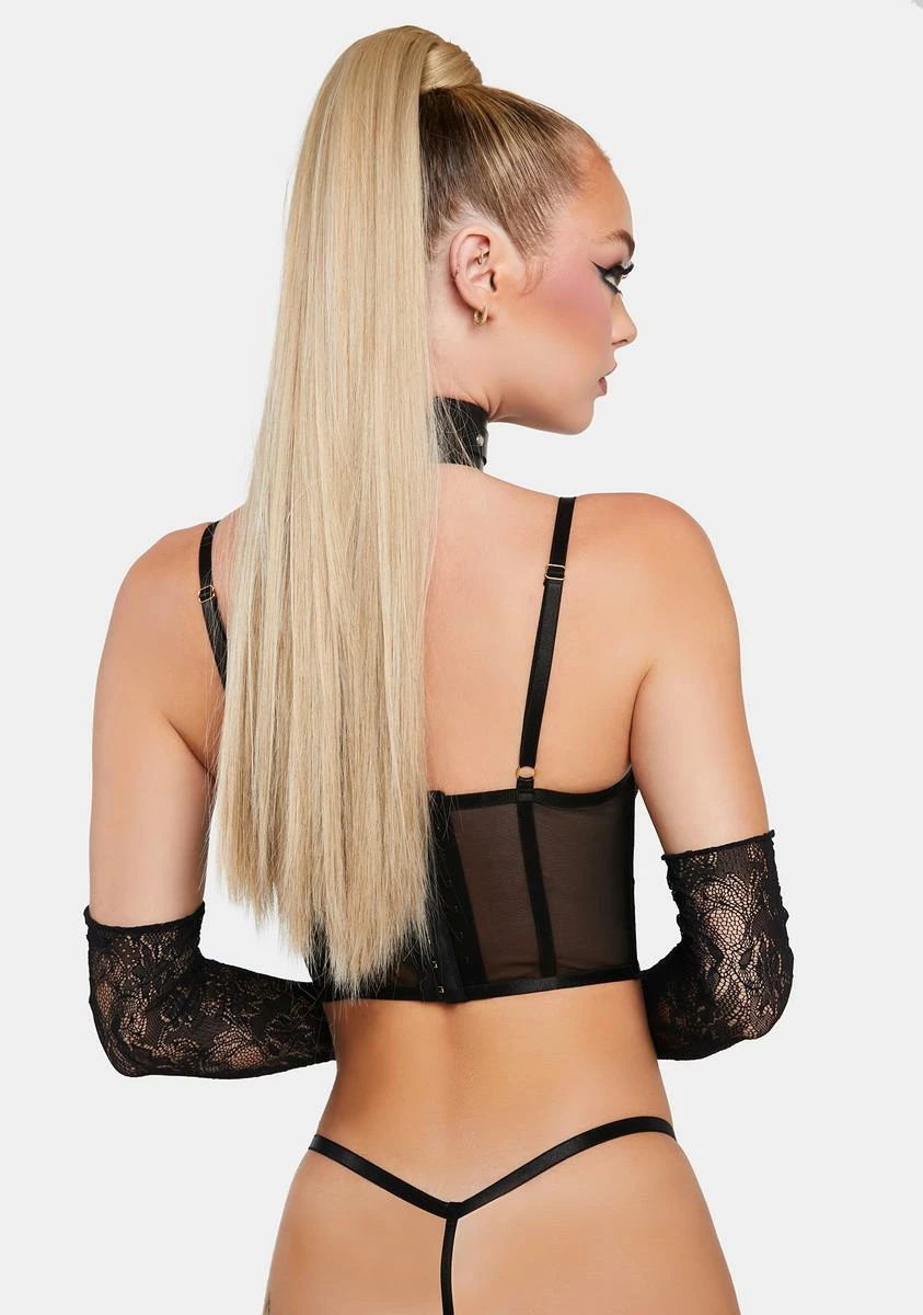 cuz your romance is just starting. This lingerie set includes a bustier that has a sheer lace construction, an underwire bust, structured boning, an eyelash trim, adjustable shoulder straps, hook and eye closures in the back, a front zipper closure on the front, and a matching G-string thong panty.