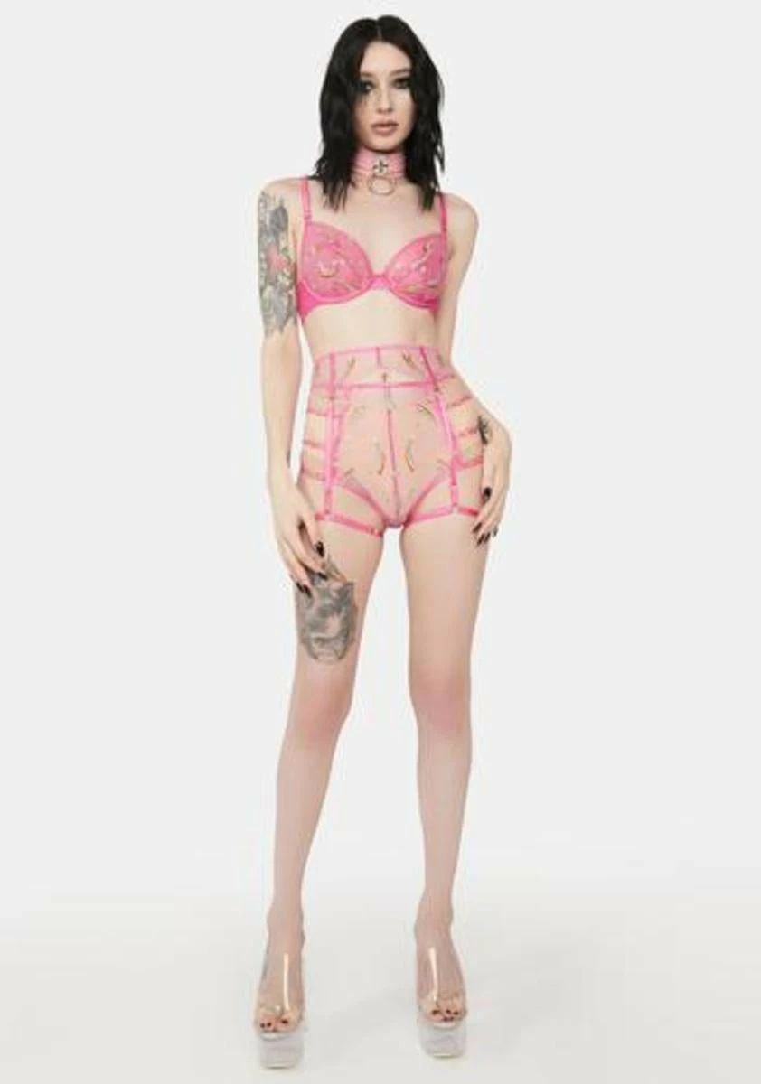 Playful Promises Coccinelle Rainbow Shooting Star Pride Embroidery Suspender Belt