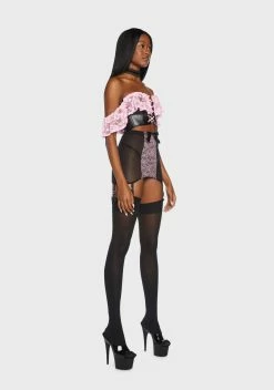 Playful Promises WW X Sammi Black Satin & Lace Wired Harness Bodysuit