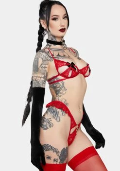 cuz you’ve got them head over heels! This sexy lingerie set has a neon lace construction, strappy details with O-ring hardware, and an underwire bust.