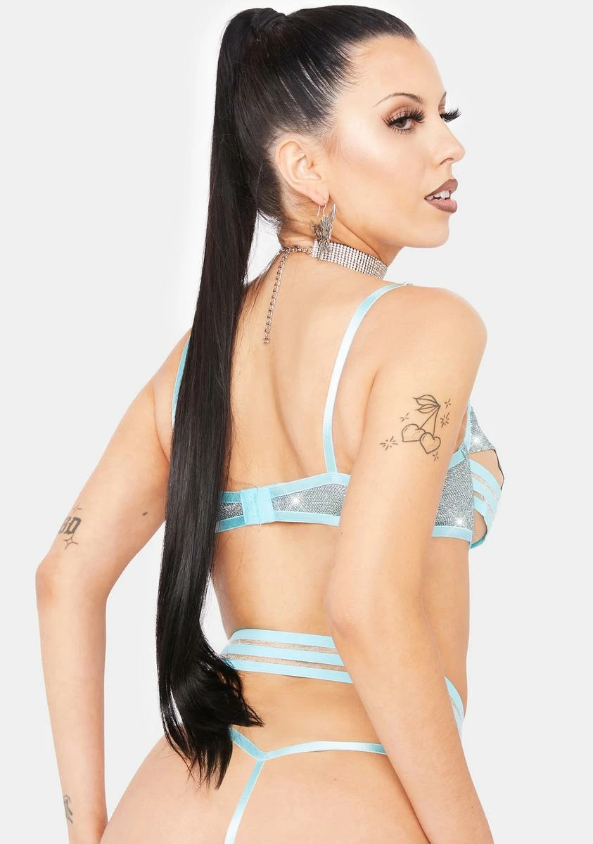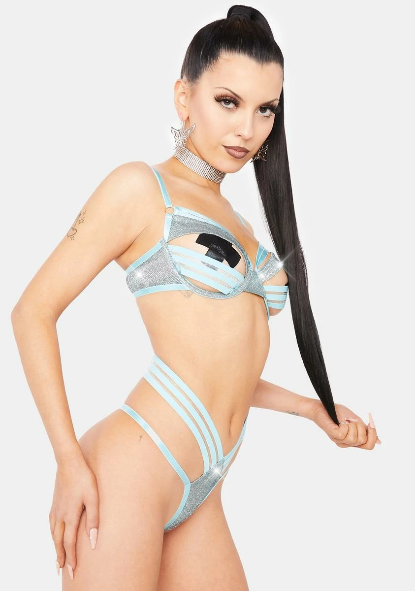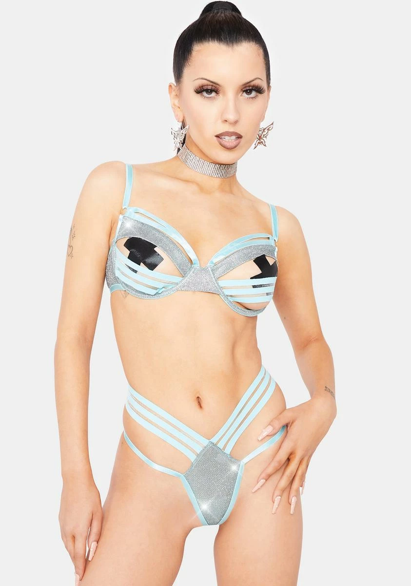 Roma Baby Blue Shimmer Bondage Lingerie Set