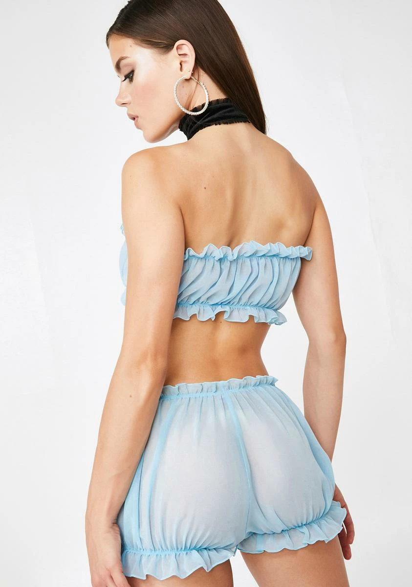 don’t be jealous, bb. We all are stars and deserve to twinkle in these sheer chiffon shorts that have ruffle trim, a dreamy bow accent on the front, and a high waist fit.