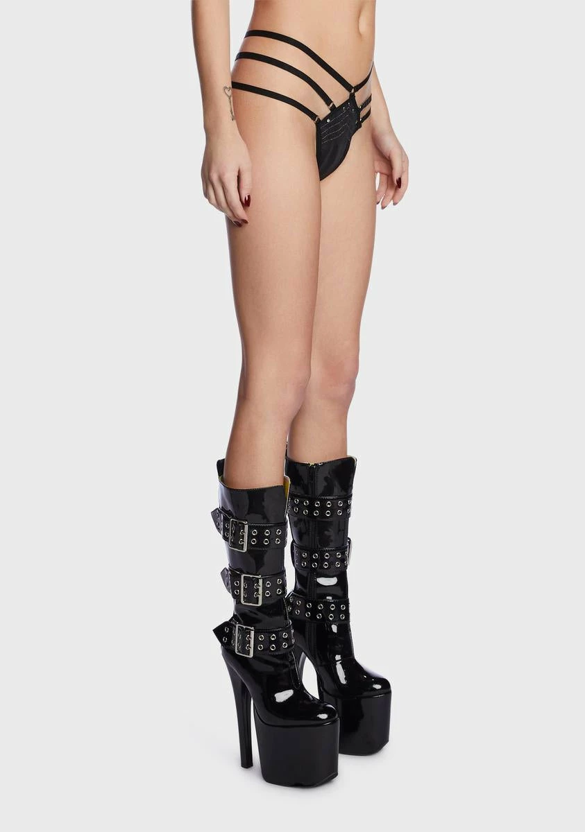 unleash your inner rebel! This thong has rivet hardware detailing, metallic stitching, a microfiber construction, and adjustable side straps.