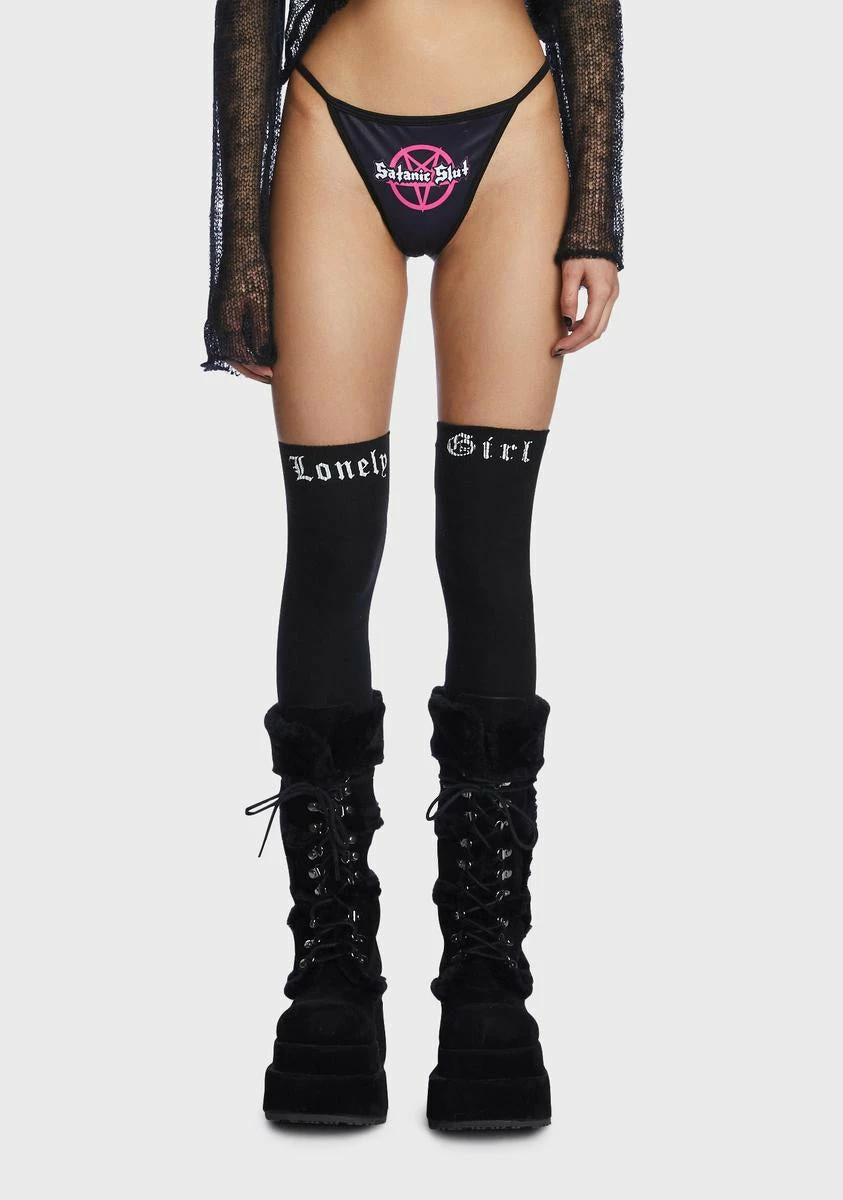cuz i’ll worship you. This thong comes with a high wait, thin strap waistband, and a pentagram text graphic at front.