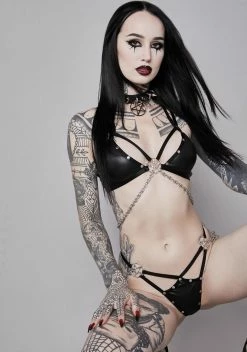 cuz get their fire going. Look da bomb with this bodysuit that has a stretchy sheer fishnet construction, adjustable shoulder straps, a pentagram strappy design on the front, and snap closures on the crotch.