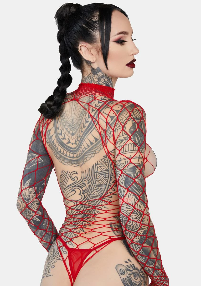X_Be Wicked Red Dancing All Night Fishnet Bodystocking