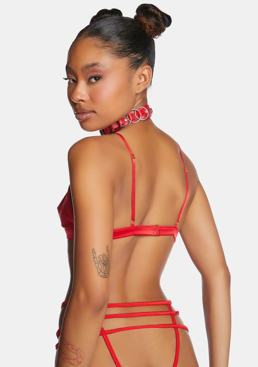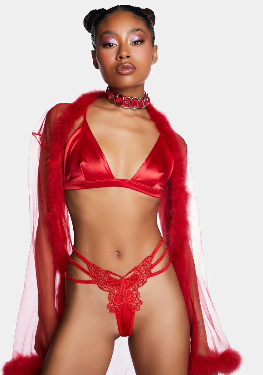 take me to paradise. This 2-piece lingerie set has a stretchy satin construction, butterfly embroidery, adjustable shoulder straps, and a back G-hook closure. Includes a triangle bralette and strappy panties.