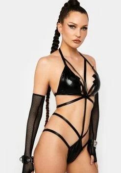 cuz you’re the most desired, babe. This babydoll and garter set has lace, ribbon, and chain detailing.