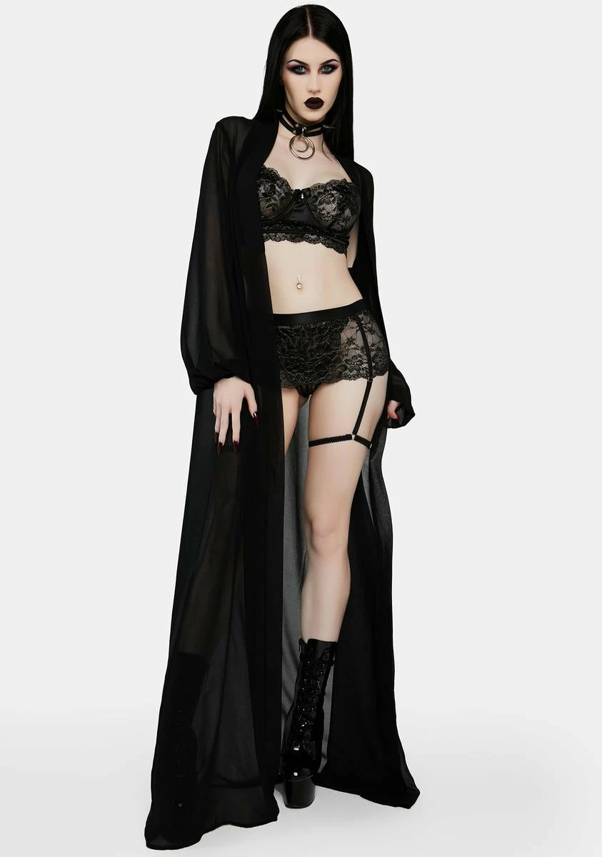 cuz you’re lookin’ for someone to love. This 2-piece lingerie set has a sheer lace and satin construction, underwire bust cups, a rhinestone-embellished bow applique, adjustable shoulder straps, back hook-and-eye closures, a low-rise elastic waistband, and attached adjustable leg garters.