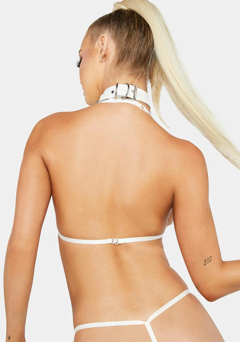 let’s fly together. This set comes in a sheer mesh construction, with embroidered butterfly details, a thong, and hook closure.
