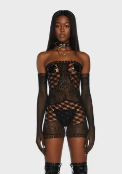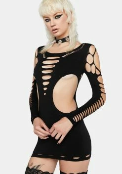 cuz let’s make the world shake. This bodysuit has a sheer lace construction, a high neckline, a cut out design, strappy detailing, and a bodycon fit.