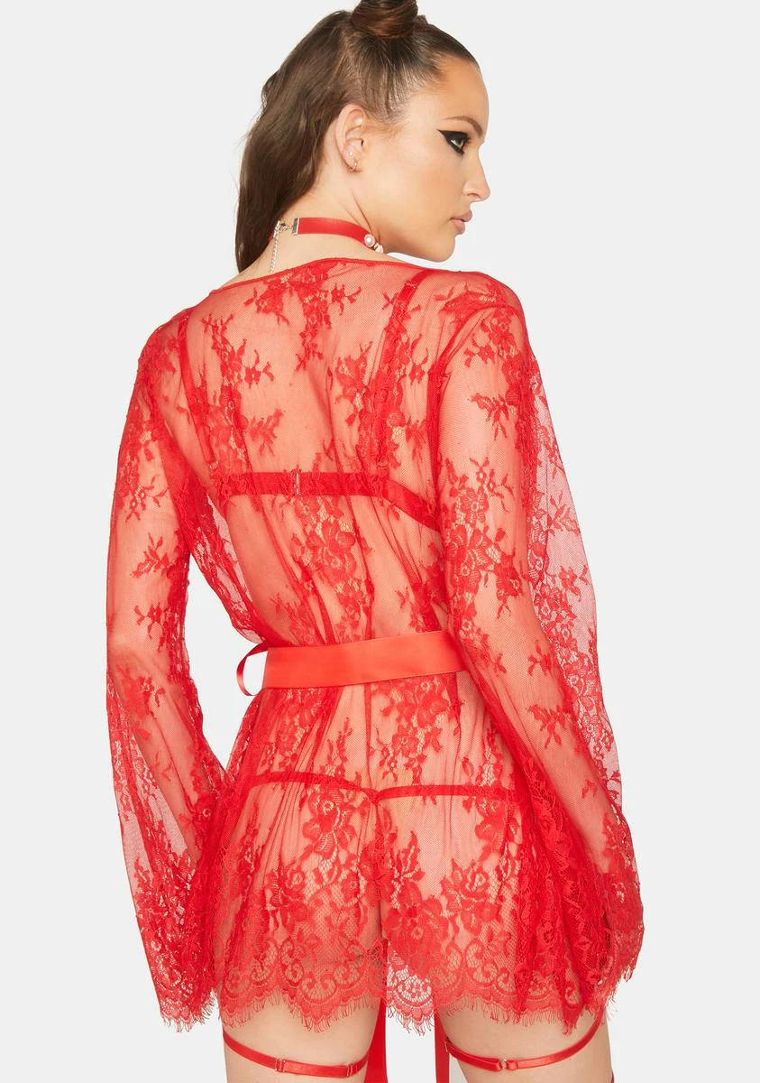 make ’em fall in love. This lace lingerie set includes a cut-out teddy with garter straps and a matching robe.