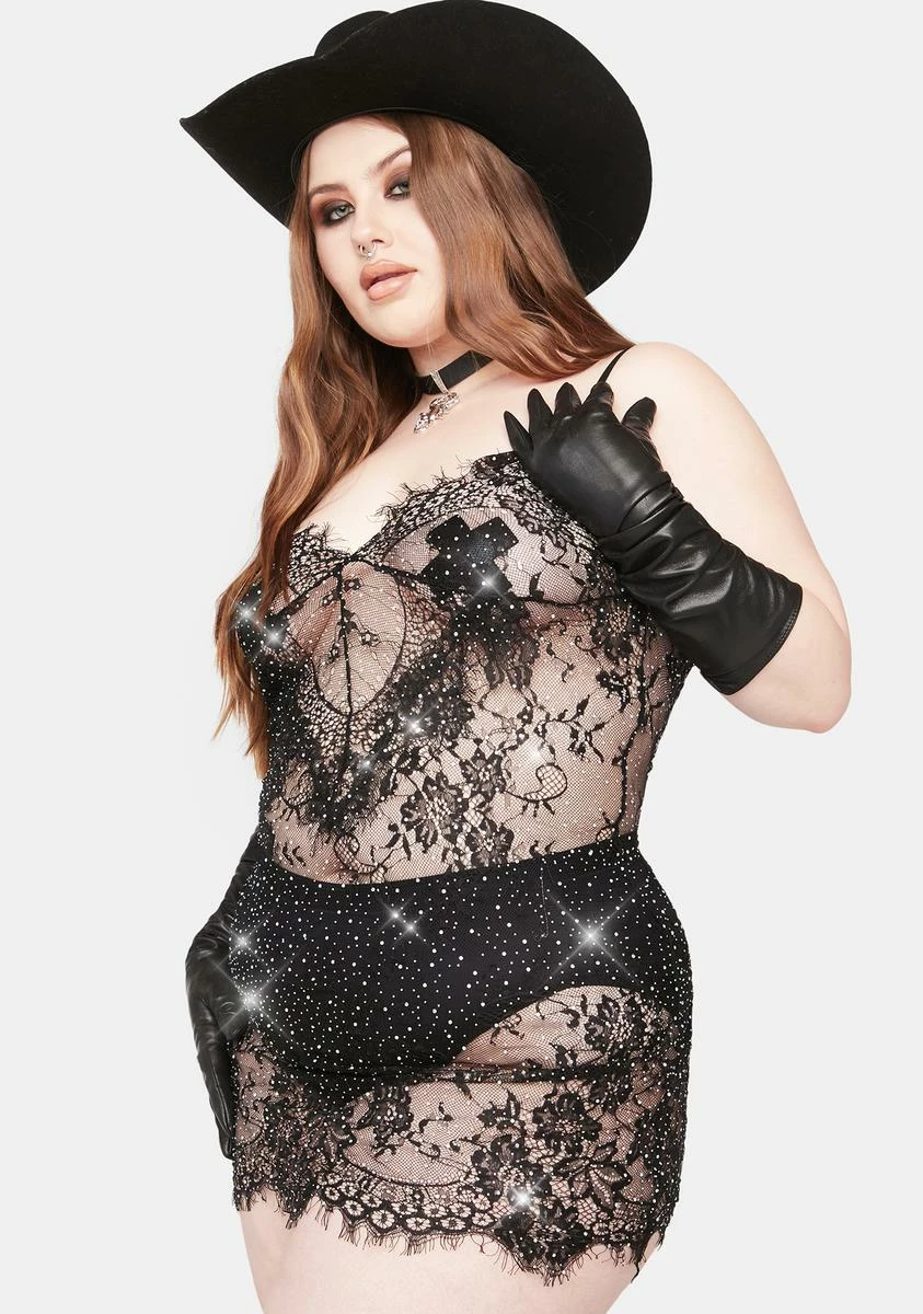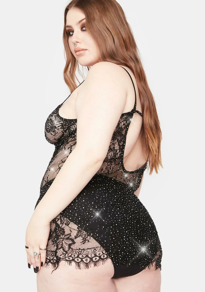 X_Leg Avenue Plus Undercover Lair Lace Rhinestone Chemise