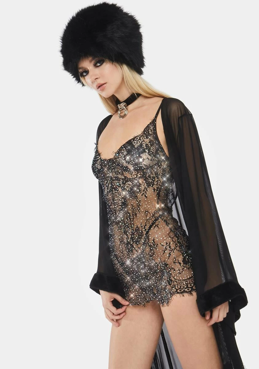 X_Leg Avenue Undercover Lair Lace Rhinestone Backless Chemise