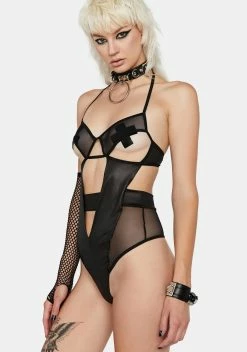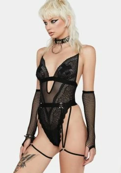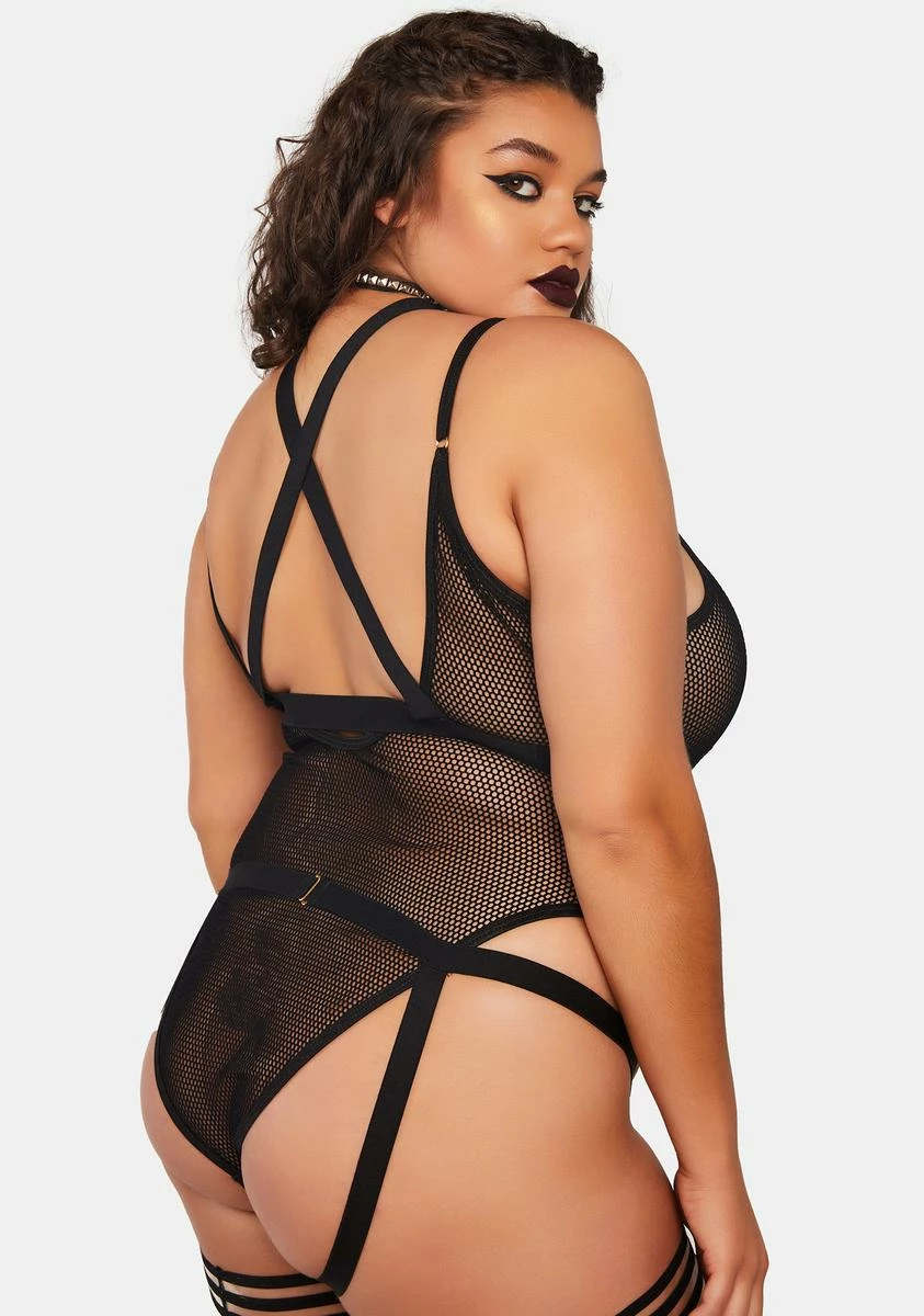cuz all I need is you. This 2-piece lingerie set has a stretchy sheer mesh construction, adjustable straps all over, a back G-hook closure, and cheeky rear coverage. Includes a bodysuit and a harness.