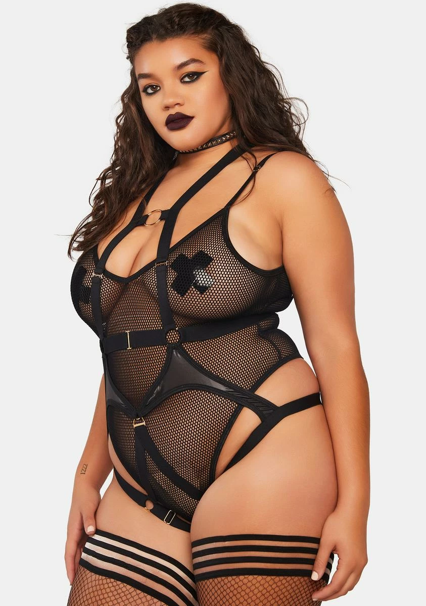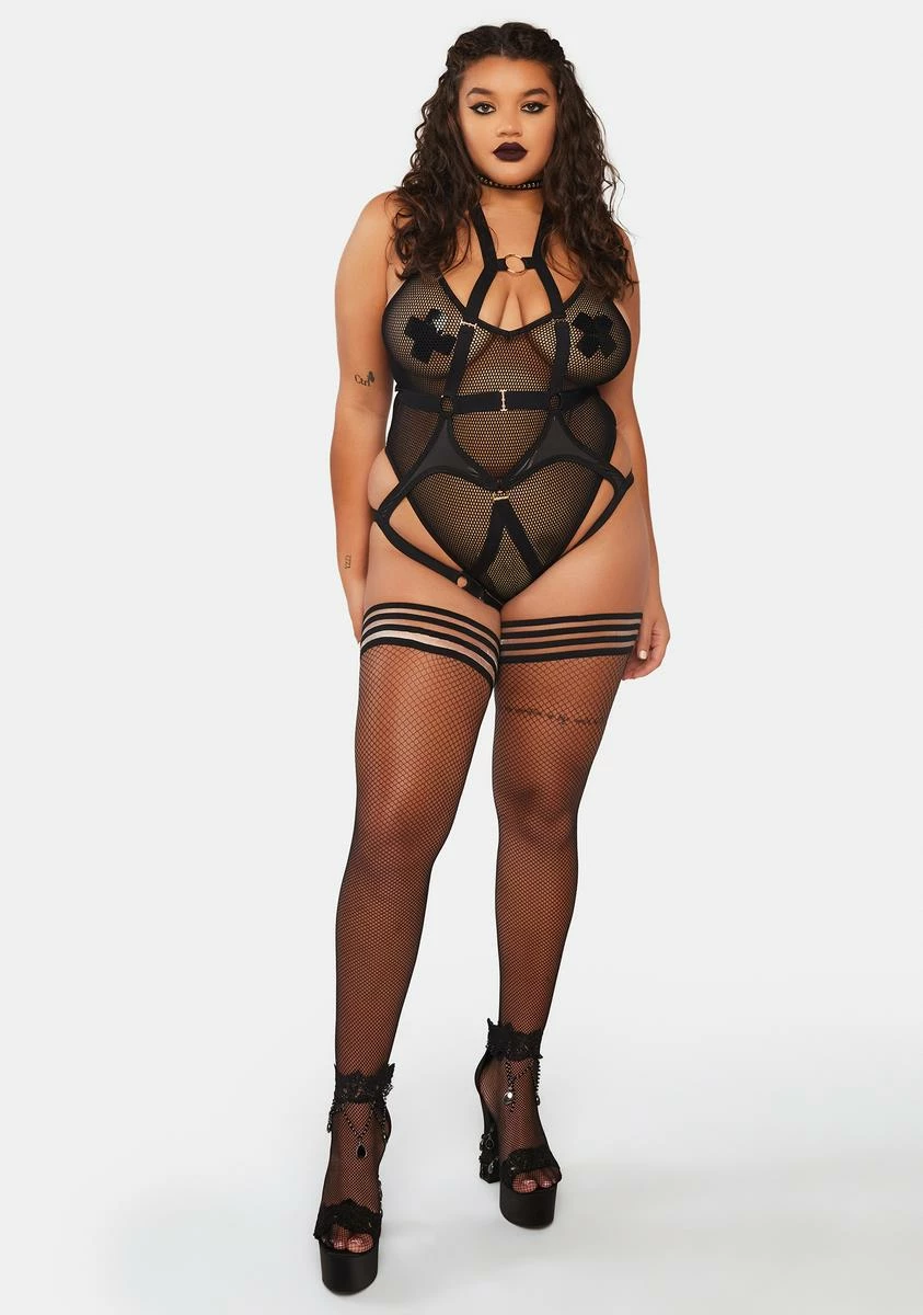 X_Mapale Plus Acting Out Sheer Bodysuit & Harness Set