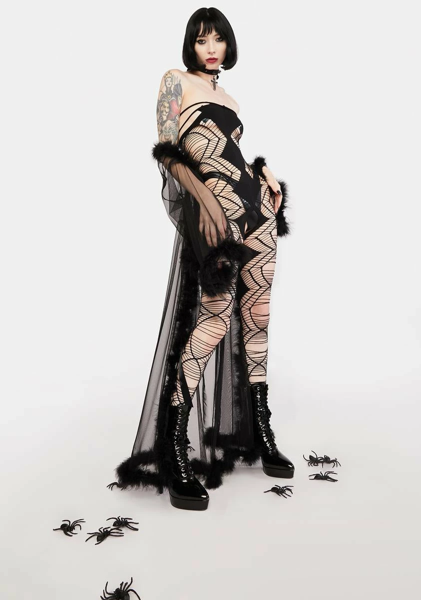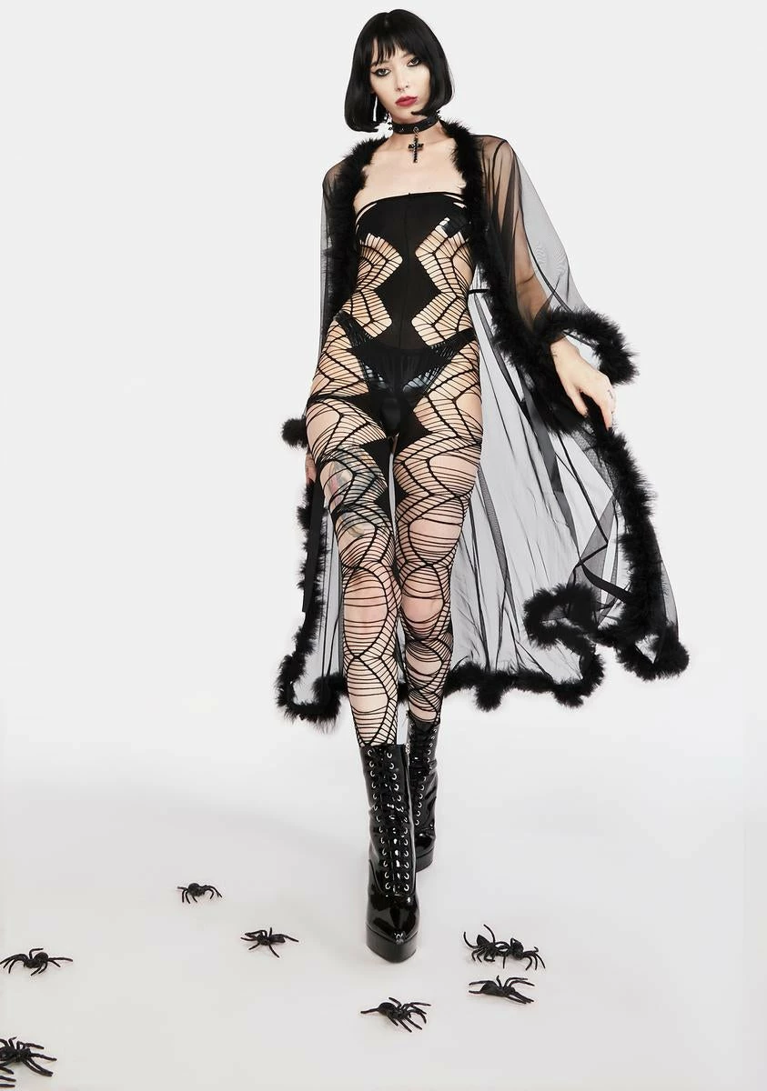 cuz they can’t ignore the attraction. This sultry strapless bodystocking has a supa stretchy construction, a crotchless design, and zig zag cut-out accents down the sides.