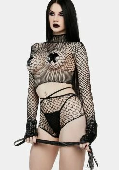 cuz make their dreams come true. This crotchless bodystocking has a sheer micronet construction, deep v-neckline, and an abstract design all over.