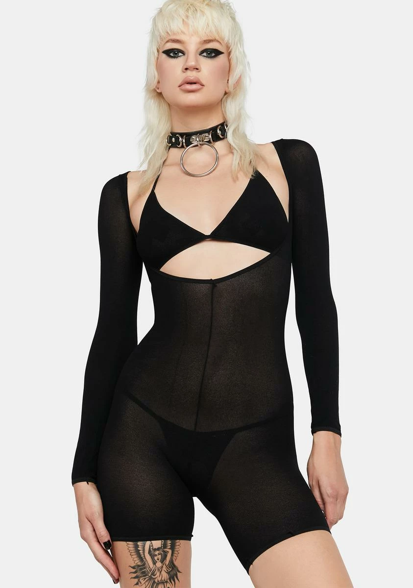 take them to the ground! This 2-piece playsuit and bralette set has a semi-sheer construction, a plunging scoop neckline, and adjustable halter ties.